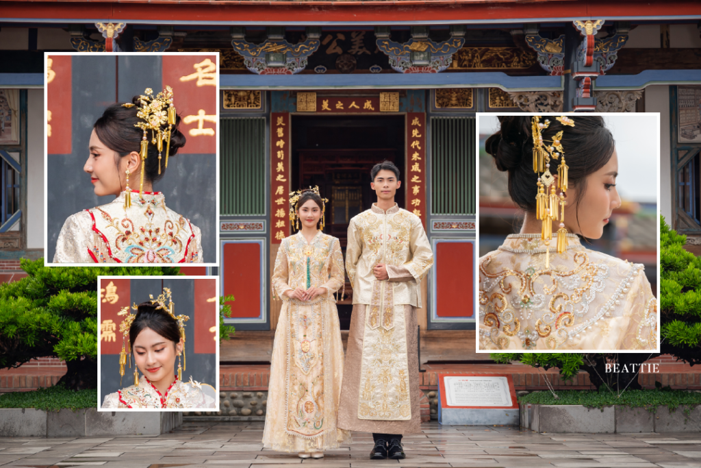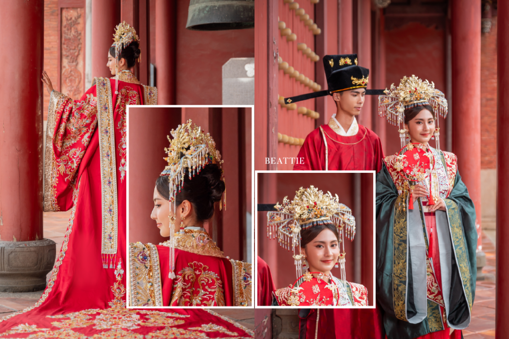 鳳釵象徵吉祥與尊榮,是傳統婚嫁中最具代表性的飾物!金質或鍍金鳳釵能在陽光下閃耀,襯托出高貴的氣場。步搖以細鏈與流蘇構成,隨步伐輕搖生姿增添靈動感,可搭配在盤髮中段或髮髻後方,使整體更有層次。流蘇髮飾能夠垂落兩側修飾臉型柔化線條,流蘇在行走或轉頭時會隨動搖曳,讓畫面增添許多層次及動態感,最重要的是跟什麼髮型都能自然融合!