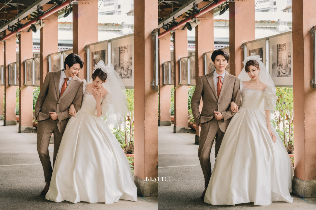 鐵窗的花紋、招牌的褪色、攤位的油光,都成了這場婚紗故事最真實的布景。