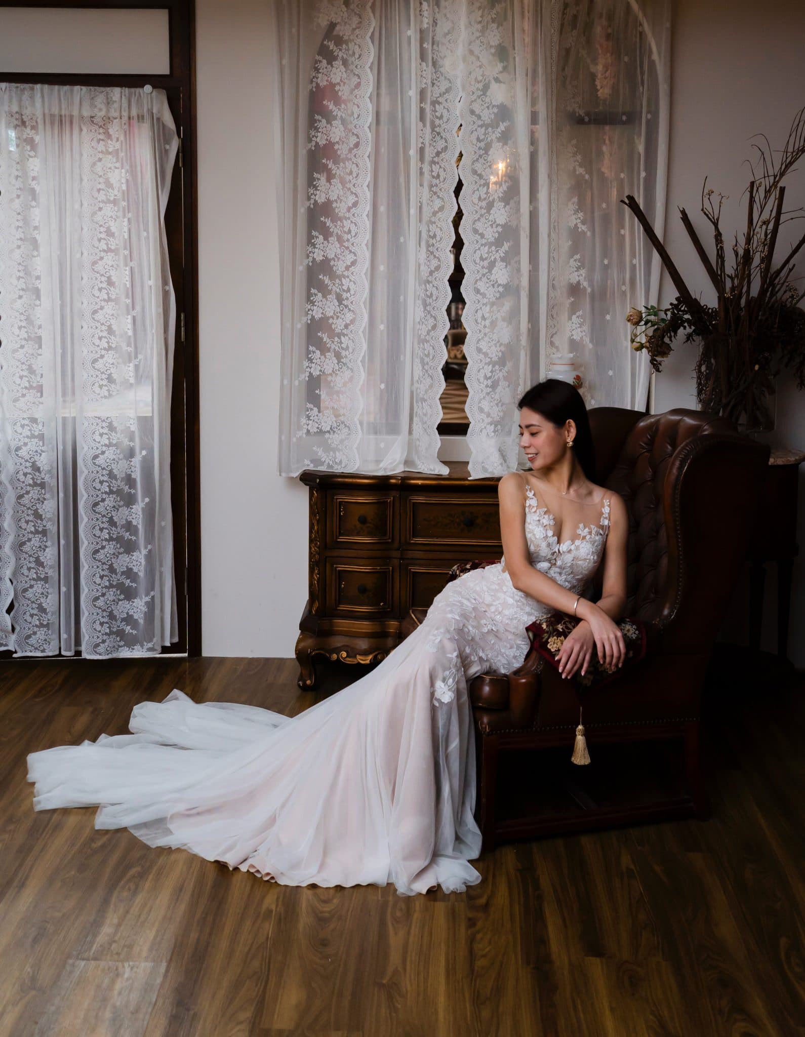 既修身又充滿美感。畢竟新娘最在意的細節肯定是臀、腰、手臂肉這幾處。在這裡,比堤婚紗都能一一考量到,真的非常貼心!
